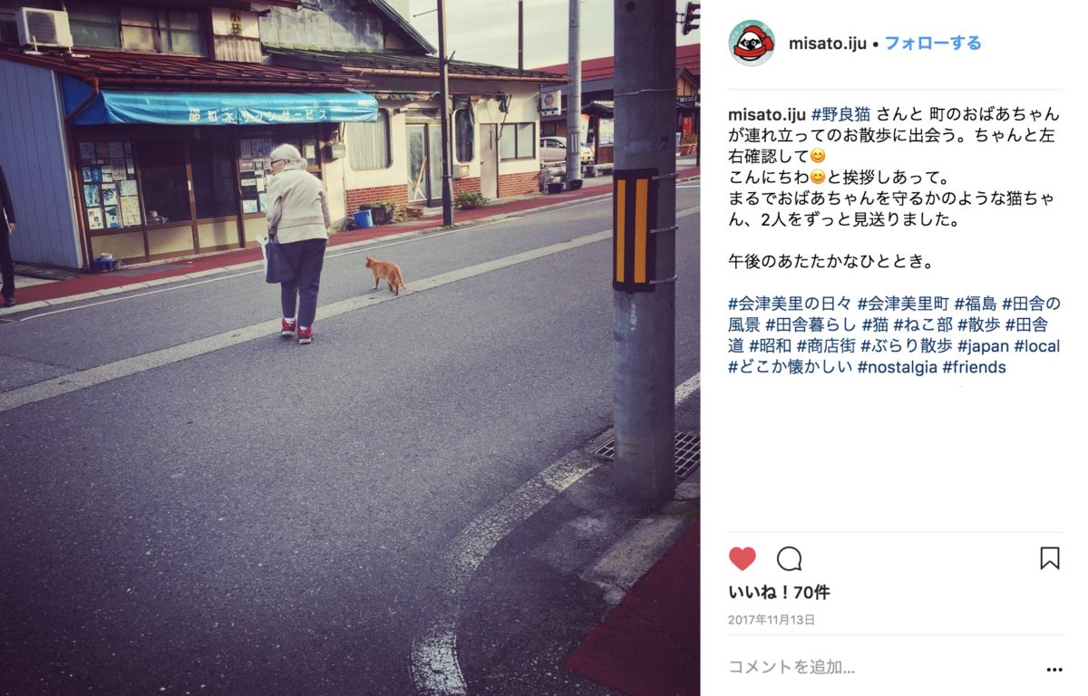 投稿の頻度は、自分たちの負担にならない程度に1日1〜2回ほど。昼間にiphoneで撮影を行い、ひと息ついた夜に写真を加工して投稿することが多いそう。まちの編集室で使っている「#会津美里の日々」に加え、英語のハッシュタグ「#kawaii」「#japantrip」などを添えて発信すると、海外の人々からの反応が増えると言います。最近では、会津美里町出身で今はまちから離れて暮らしている方から「懐かしい風景をありがとう」という嬉しい知らせが届くことも。