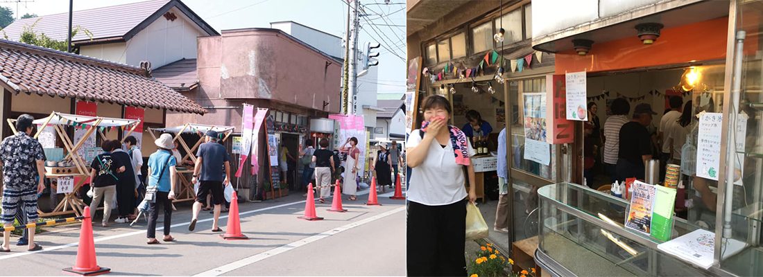 仕掛け人は、会津美里町が大好きなまちの方たちとまちづくりのプロで構成したグループです。会津美里町を愛する女性たちの有志グループ「会津美里こらんしょwoman」の協力のもと、瀬戸町通りのタバコ屋跡と隣の公園を「こらんしょマルシェ」の会場として活用し、ハンドメイドの雑貨の販売やタピオカドリンクなど計14店舗が出店。なんと1,000人以上が訪れ、会津美里町に訪れた人たちに直接出会い、声を聞くことができました。