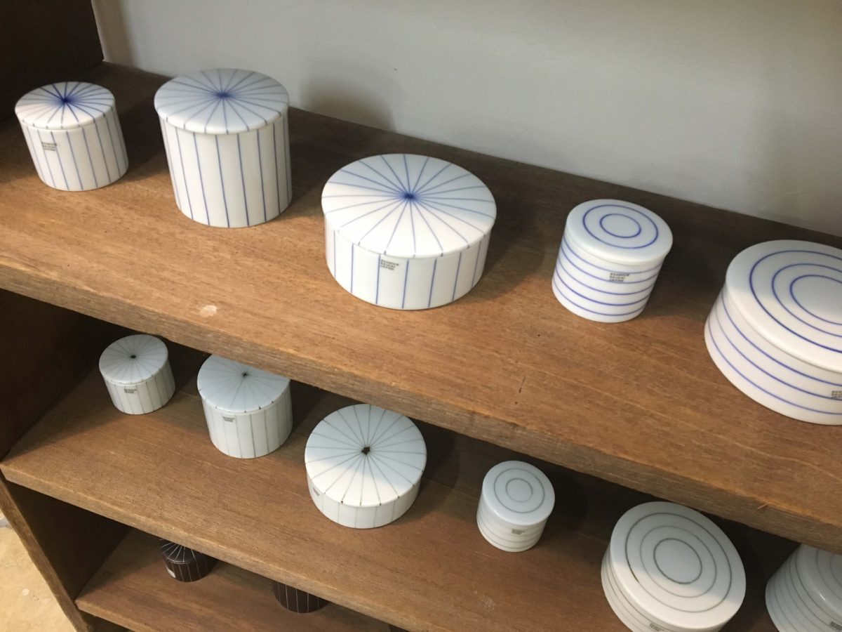 白磁に呉須(藍色)を用いた「染付」は、波佐見焼の昔ながらの技法。長らく親しまれてきた網目文などの伝統文様のほか、近年では、現代的でシンプルな絵付けの器も増えている。