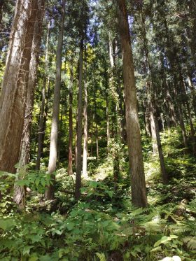樹齢何百年も経っている太くて大きな木が何本も立ち並んでいて