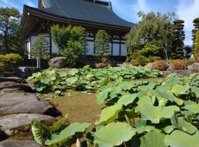 龍興寺様の蓮池は浄土式庭園となっていて5種類の蓮が植えられています。