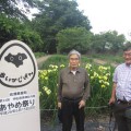 あいづじげんくん看板と写真を撮れるのは会津美里町のあやめ苑だけです!日付も入っているし、記念になりますね~!