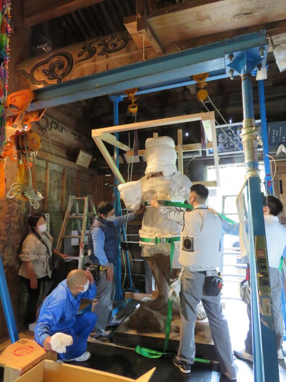 8月18日(水)に普段見ることができない搬出作業を見学することができ、普段は観音堂内に安置されている立像を間近にし圧倒され鳥肌が立ちました。慎重かつ丁寧な搬出作業をしている方々の姿も大変感動しました。