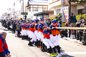 紅白合わせて157名の引き子が力いっぱい綱を引き合い、勝敗は白組の勝ち!