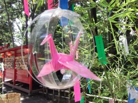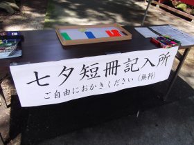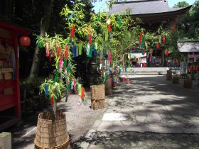 伊佐須美神社では今七夕飾りを受け付けています。皆さんも短冊に願いを書いて叶えてみませんか?