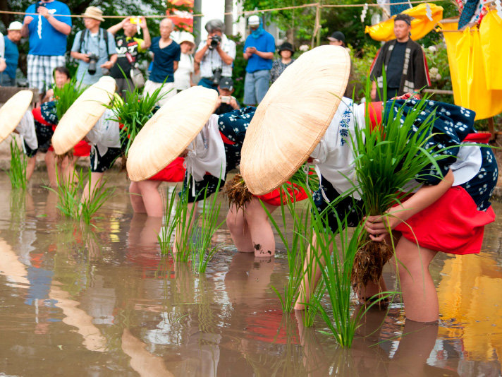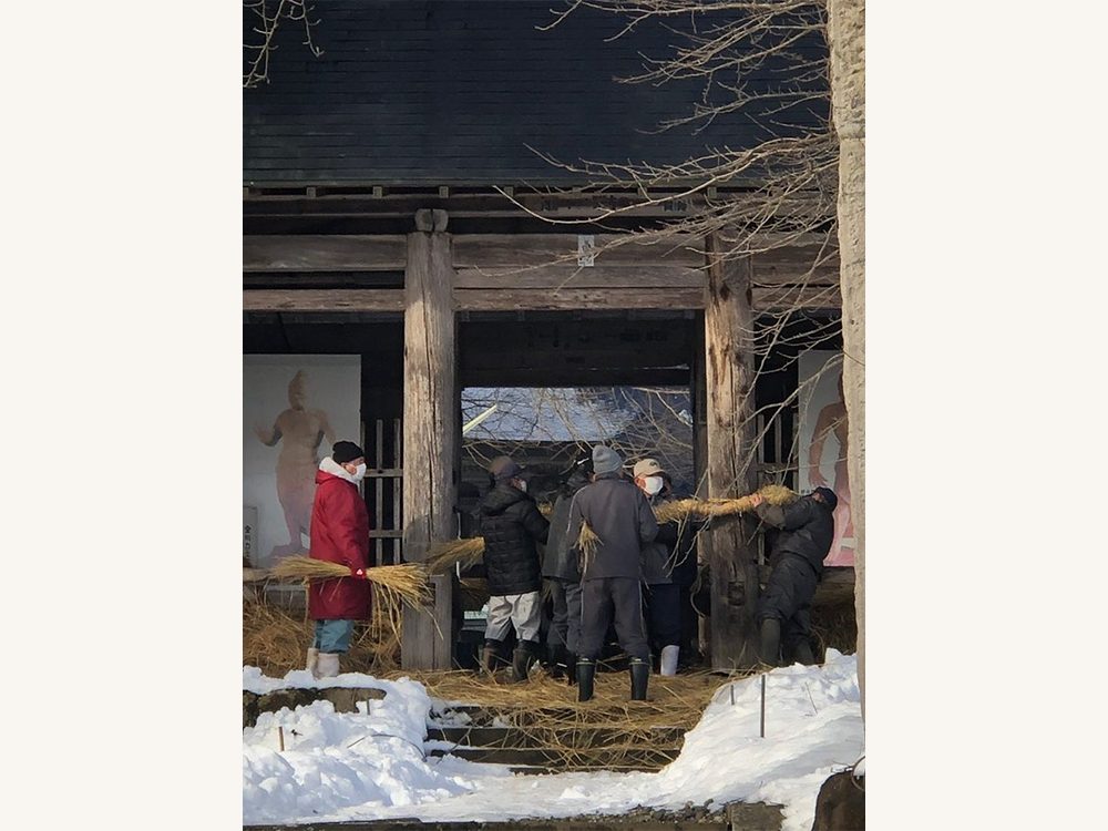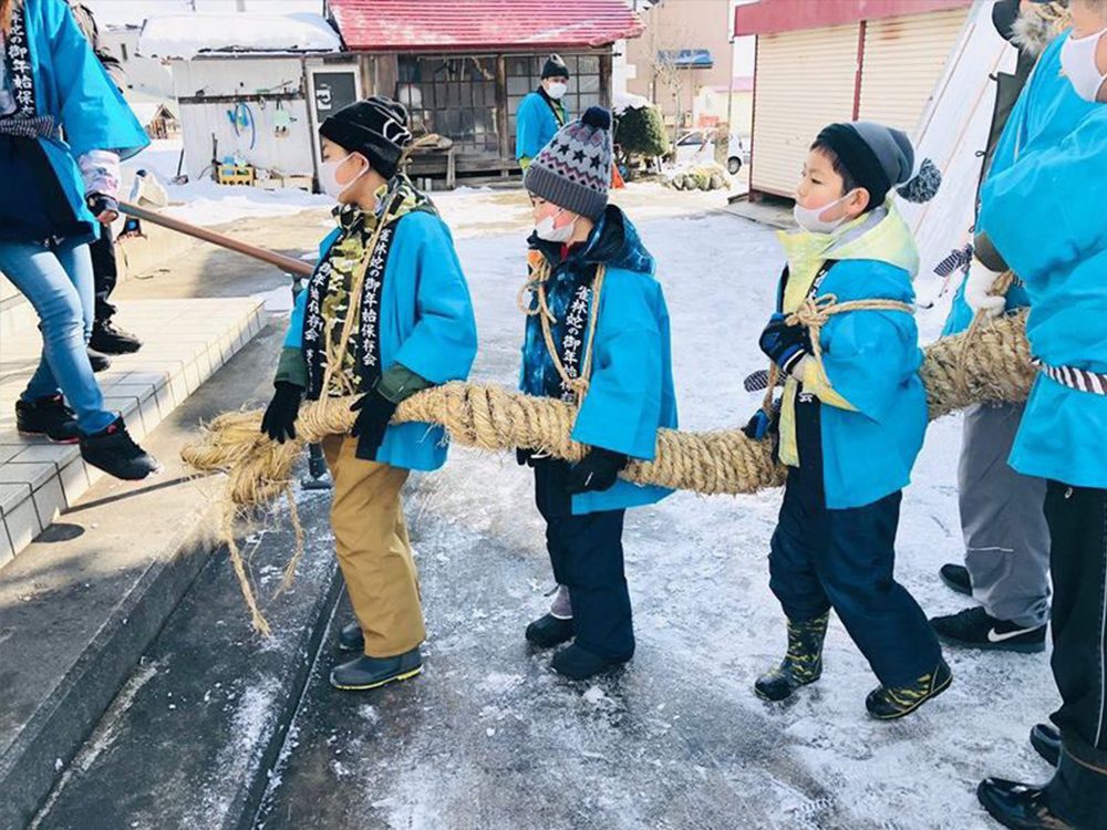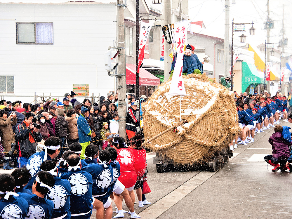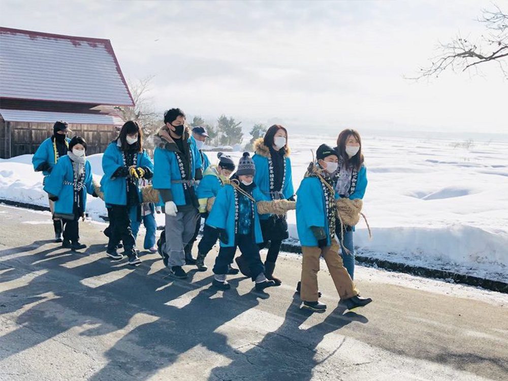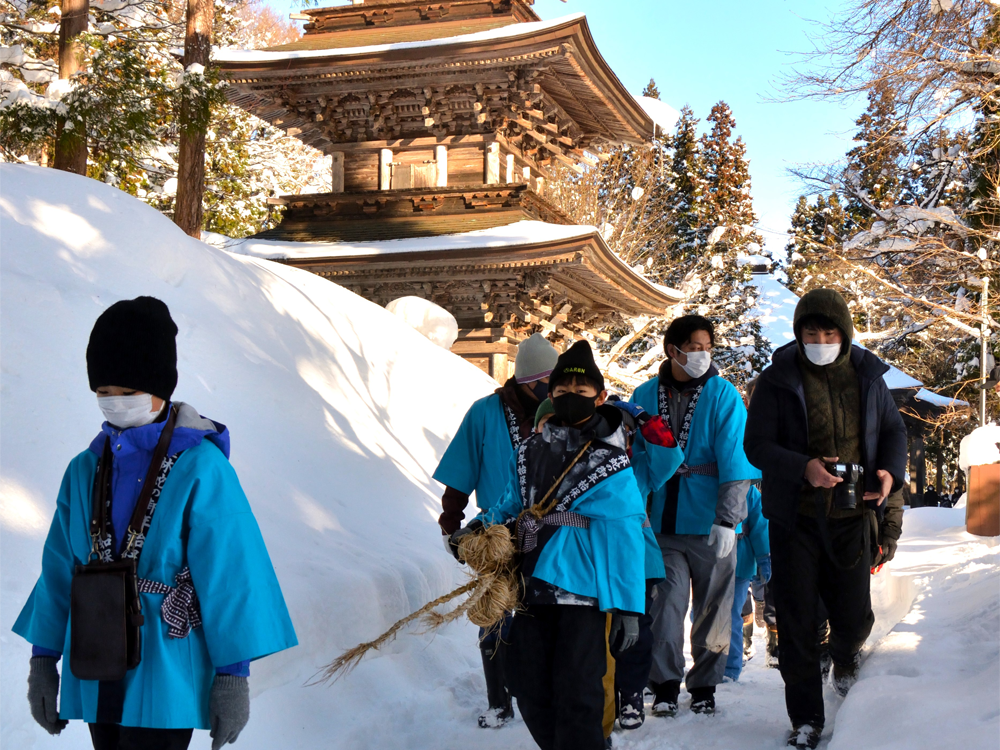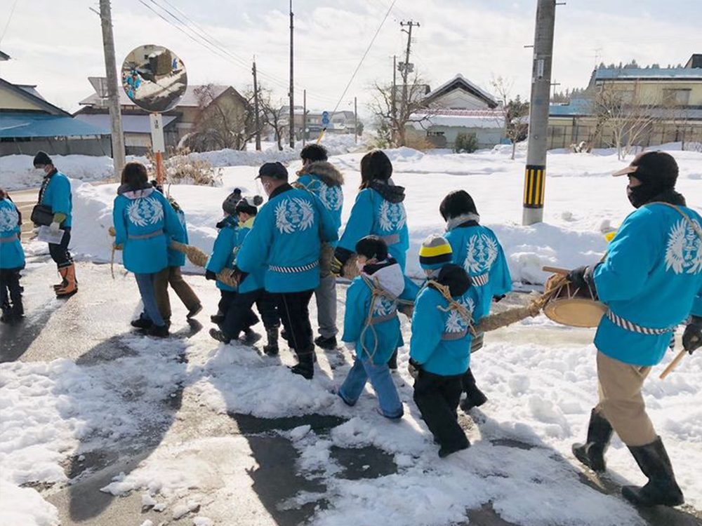 100年以上前から伝わる正月の伝統行事です。地元の小学生が長さ約7mの藁(わら)の蛇を担いで村中の家々を廻り、五穀豊穣や無病息災、灌漑水の豊かさを祈願します。