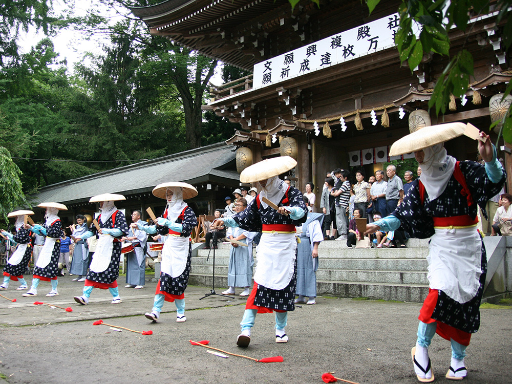 薄墨桜の花びらを入れた餅が氏子に振舞われ、境内の神楽殿では天の岩戸を模したら垂れ幕をあしらい、神話にある諸作が舞われます。