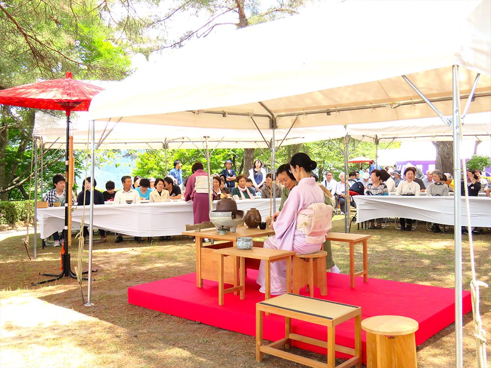 会津本郷焼や会津の伝統工芸品(漆器・桐材・からむし)を茶道具として活用した野点茶席をはじめ、山城、蘆名公に関連するギャラリー展、シンポジウム、山城内の散策ウォーク、地場産品の出店、山野草展など毎年たくさんの催しが開催されます。